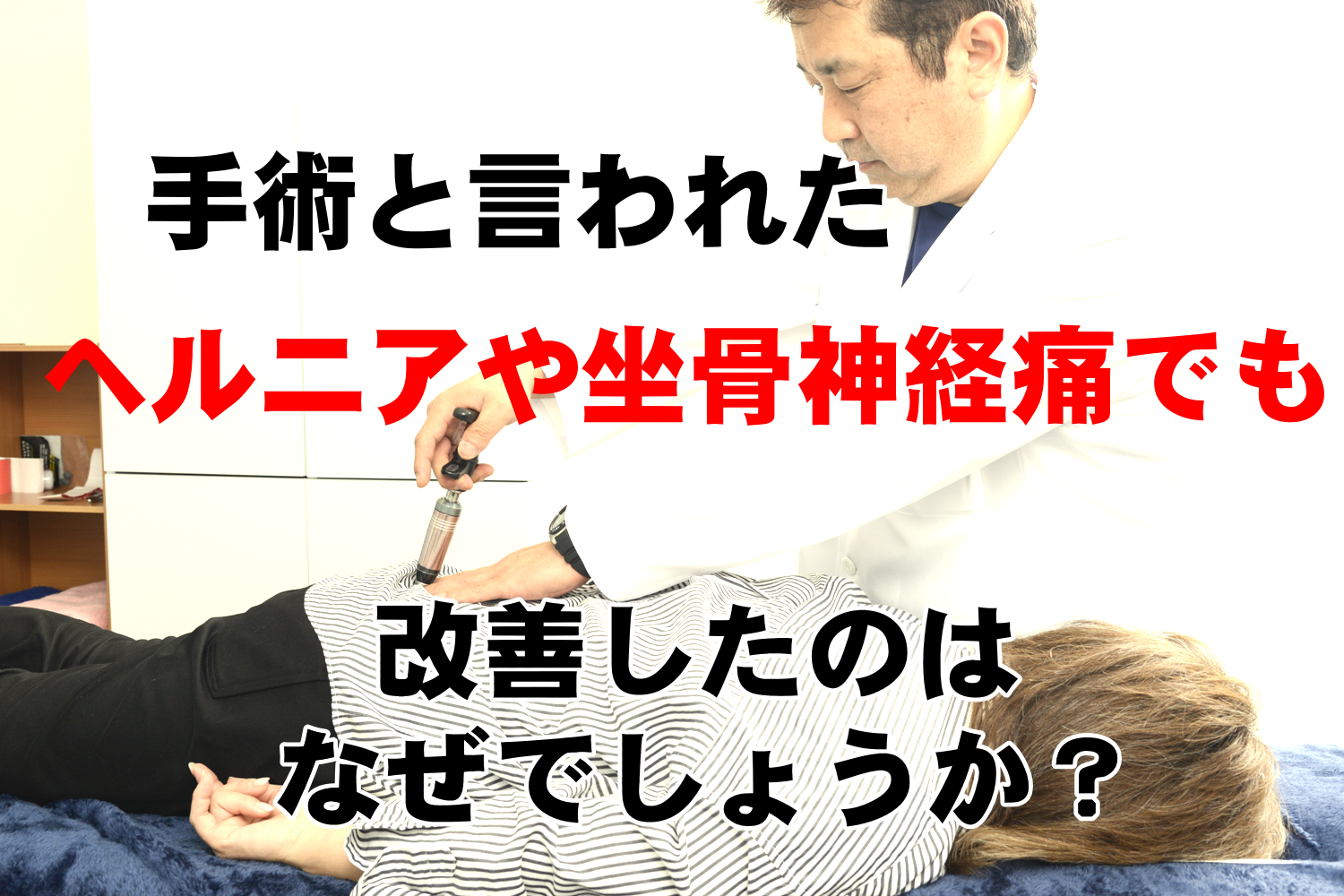 ですから、 椎間板ヘルニアと言われた方 でも、ほとんどのケースで問題無く除痛が出来ます。 安心していらして下さい 。