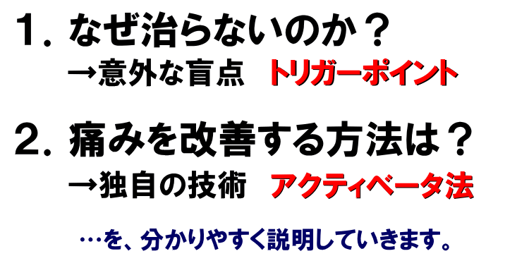 あなたがもし治らない痛みで悩んでおられるなら、今まで間違った説明を受けていたのではありませんか?