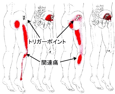 ほとんどがお尻や太ももに出来たトリガーポイントによる痛みです。