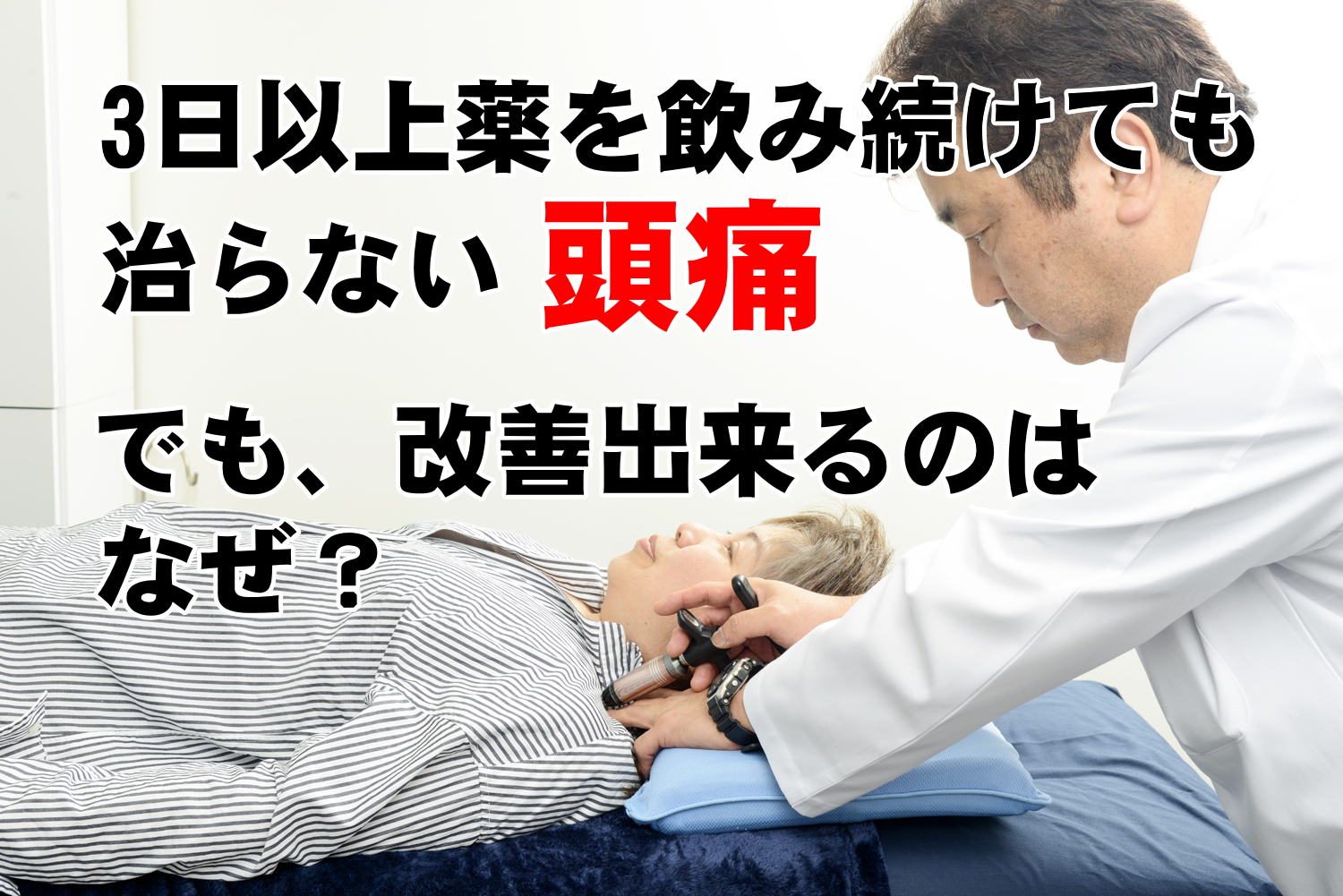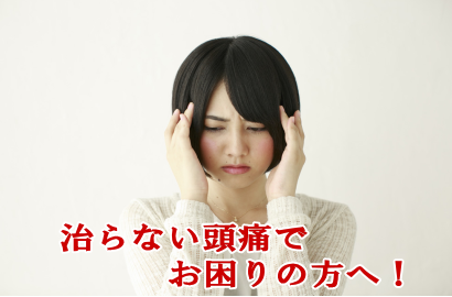 しかし慢性的な頭痛でお困りの多くの方は、すでにお医者さんにも行っており、それにも拘わらず特に有効な頭痛の改善法がある訳でもなく、頭痛薬を飲んで何とかその場をしのいでいる様な状態であろうかと思われます。