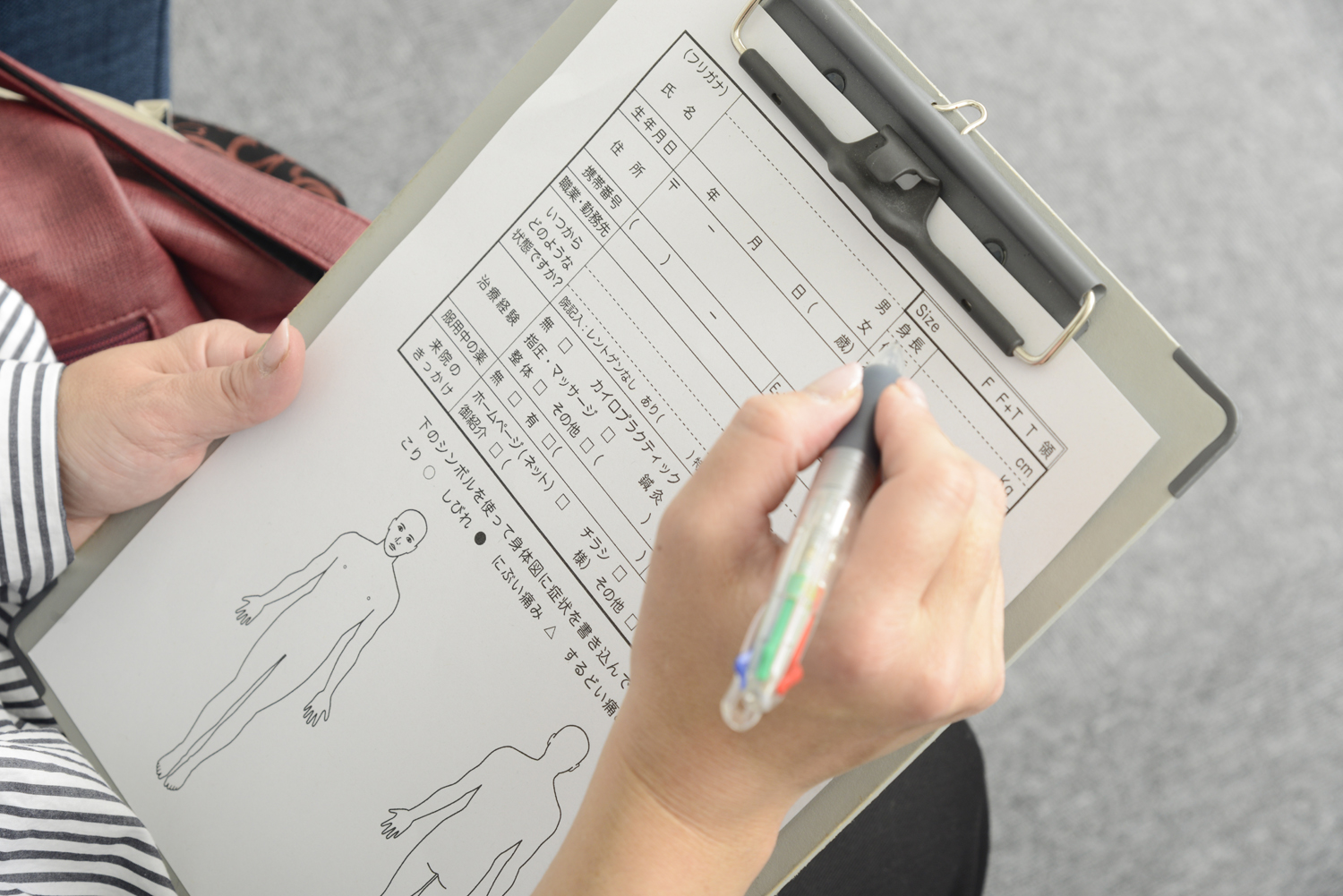 まずは問診票に必要事項や症状についての情報をご記入していただきます。