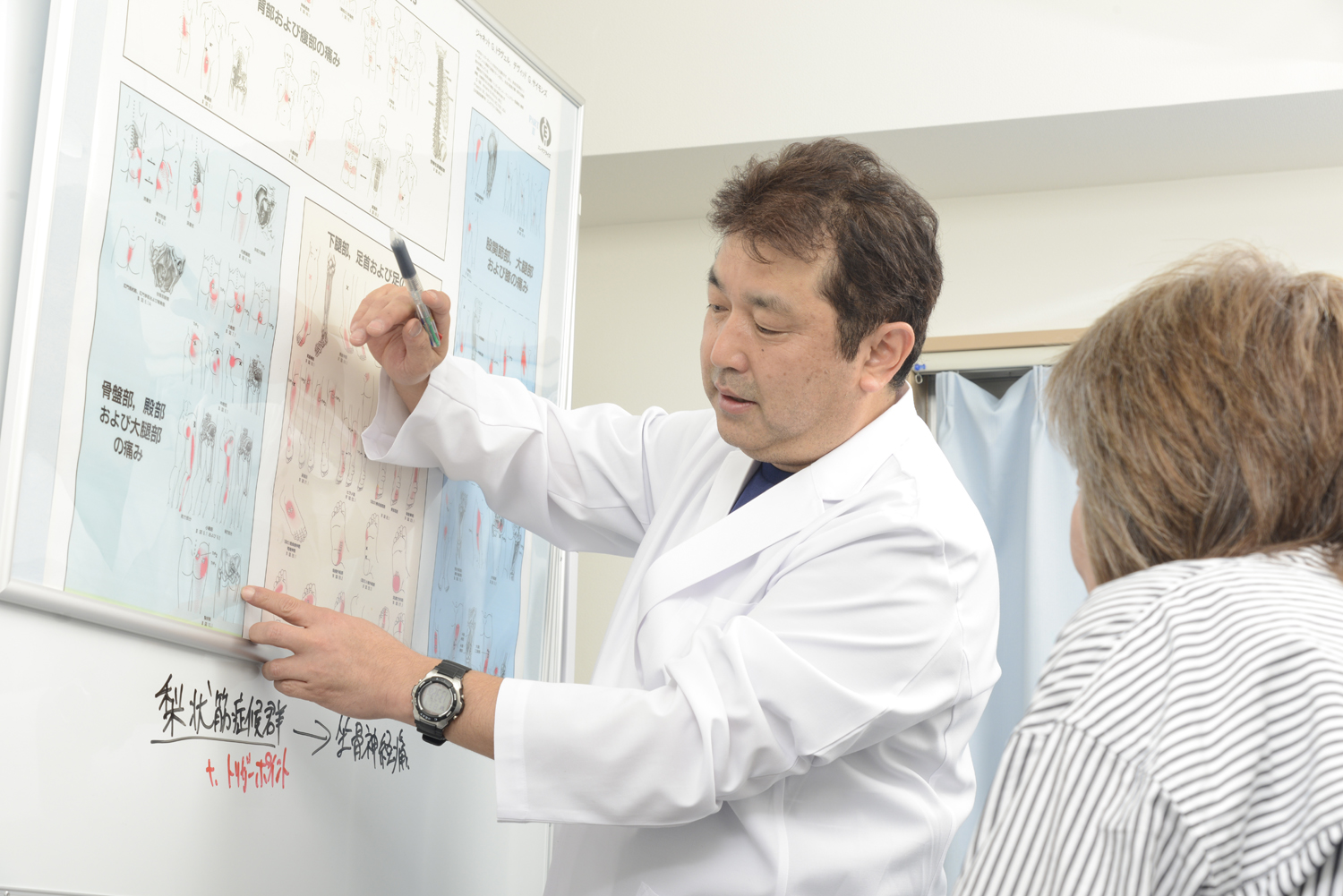 痛いところの確認や、整形学的、神経学的なテストを行います。
